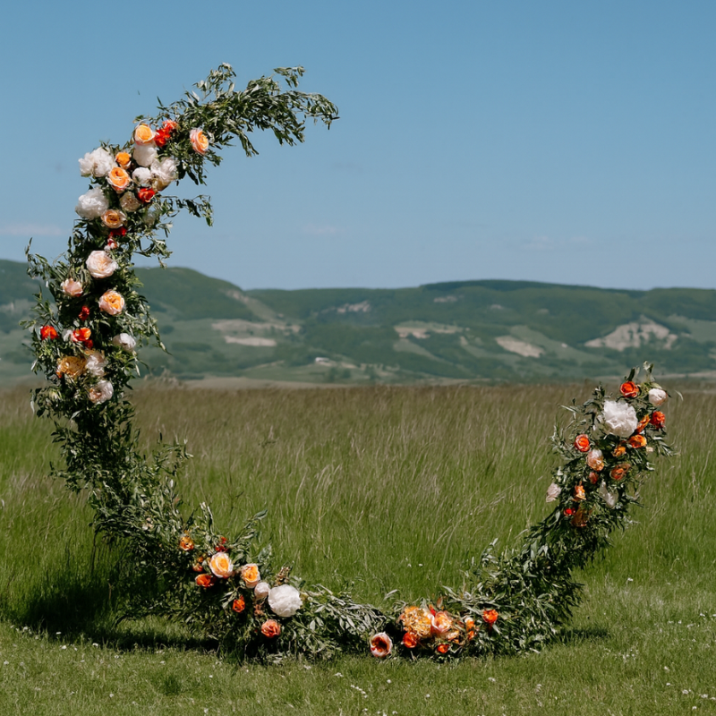 À noter : l’arche est louée non fleurie (les fleurs présentes sur la photo sont uniquement une suggestion de mise en scène).